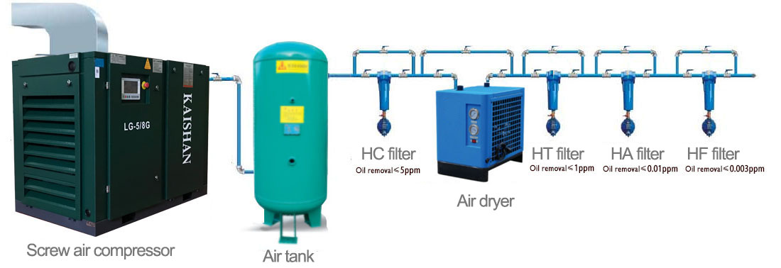 To select a frozen dryzer, it is required to consider the actual flow, pressure of the compressed air as well as ambient temperature and the pressure dew point required. The cold dryer processing volume is Qs=Qa×C1×C2, where the Qa is the actual flow of the compressed air.
