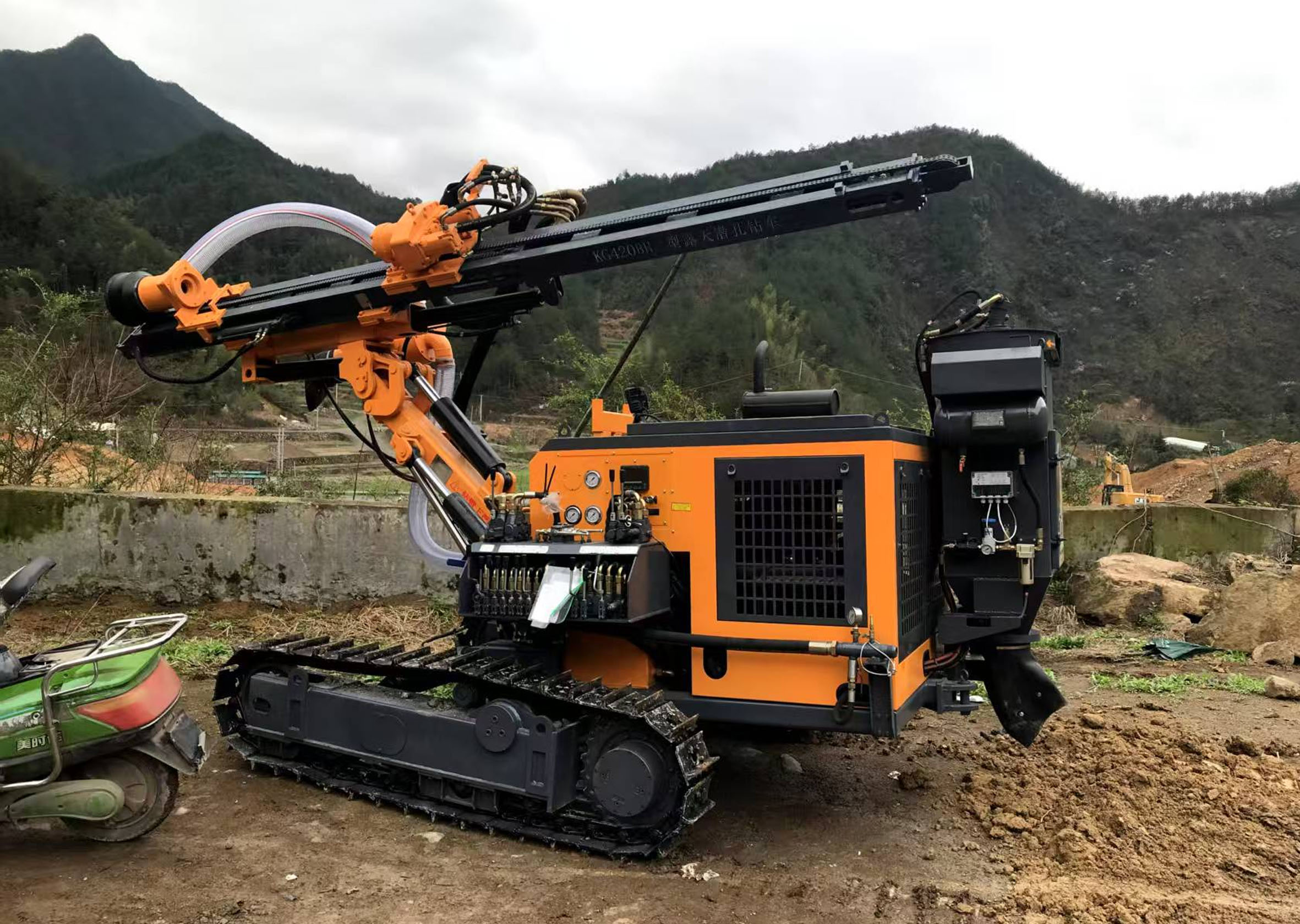 KG420T/KG420TH Surface DTH Drilling Rig is with Yuchai diesel engine(GB 3),it meets the national requirements of Emissions and environment,it is Designed and developed based on KG930B platform,it is with piston travel motor,improve the working pressure and climbing capacity. KG420H is assembled with dust collector,it is suitable for environmental standards.